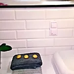 A vendégek továbbá élvezhetik a városra néző kilátást. Az apartman walk-in zuhanykabint és külön WC-t biztosít a további kényelem érdekében. A fürdőszobában hajszárító, háziköntösök és fürdőlepedők is biztosított.